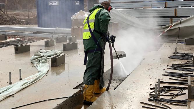 Para se poder renovar o betão, é necessário remover o material que se está a desintegrar daquele que não apresenta falhas. Neste tipo de trabalho a hidrodemolição é o método correto. Essa remoção também seria possível com martelos pneumáticos, mas esse processo apresenta grandes desvantagens.